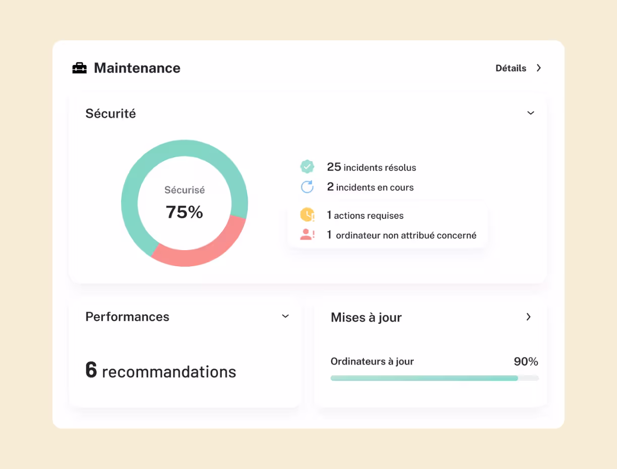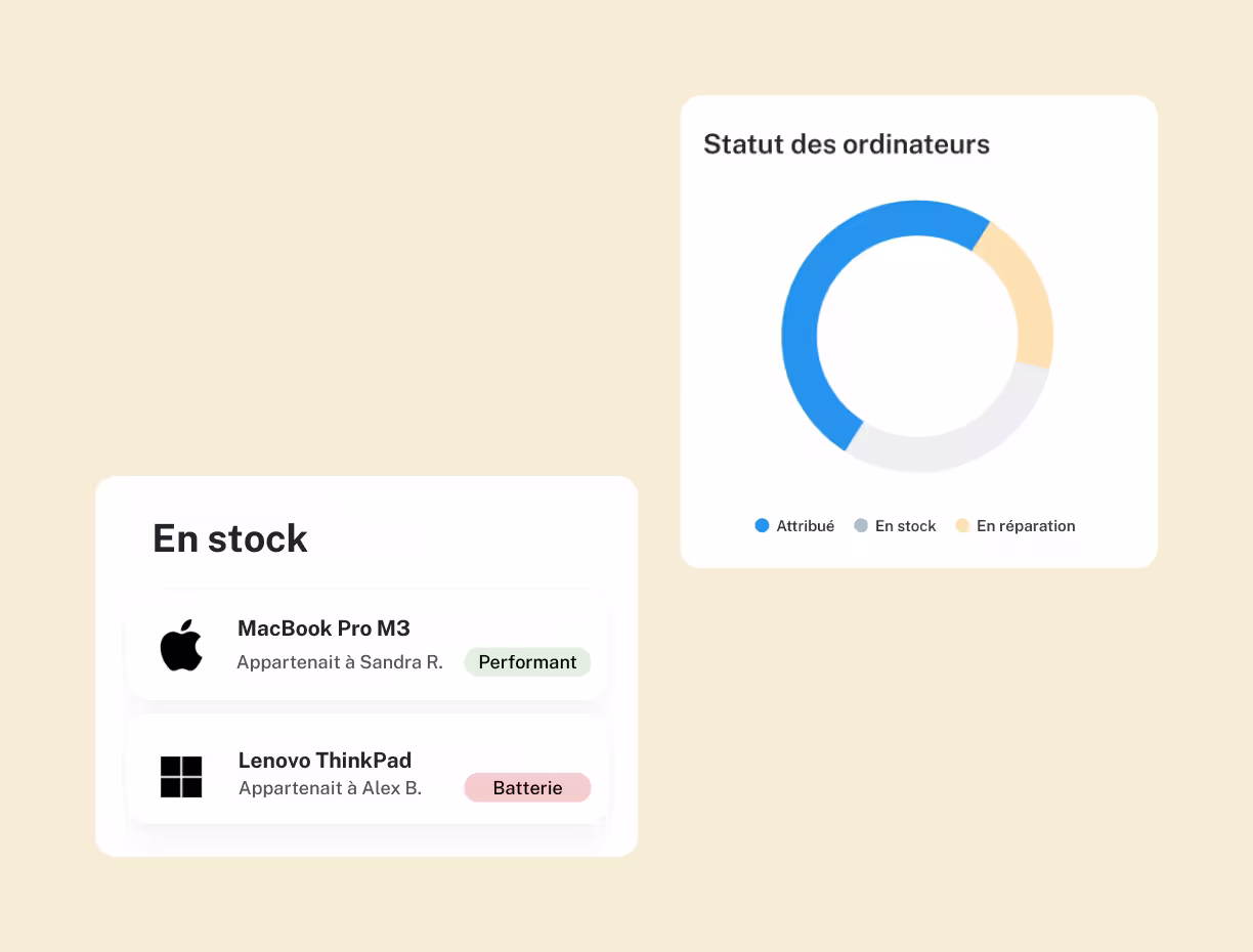 Identifiez en un coup d’oeil les ordinateurs attribués et disponibles. Gérez facilement votre stock et laissez vous guider par nos recommandations proactives .