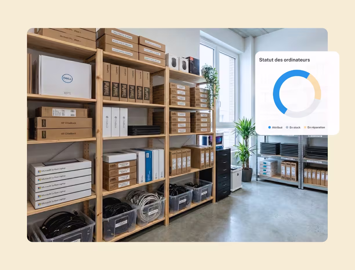 Identifiez en un coup d’oeil les ordinateurs attribués et disponibles. Gérez facilement votre stock et laissez vous guider par nos recommandations proactives .